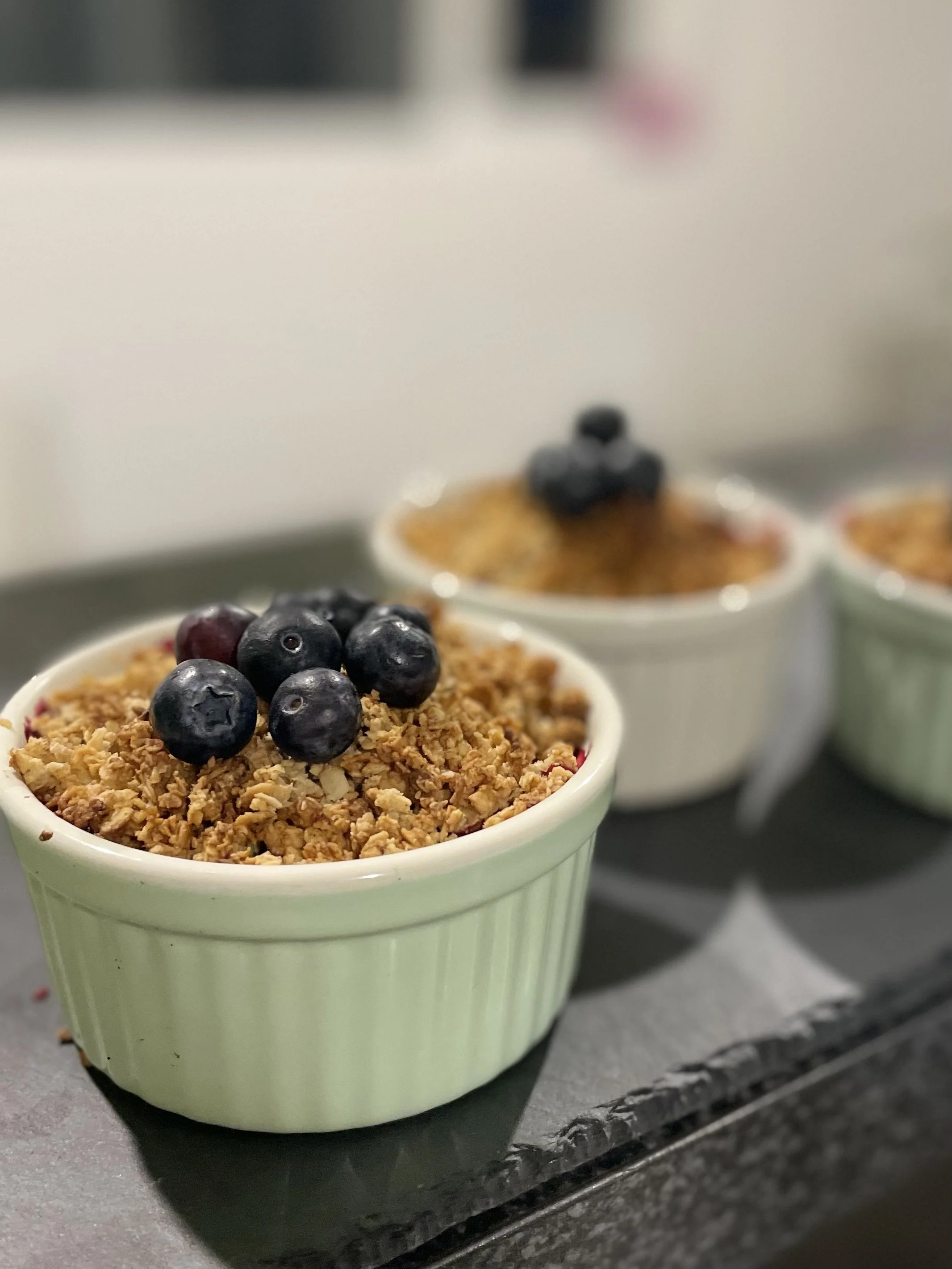 Bake or air fryer for 15 minutes, until the top is golden and the berries are bubbling.
